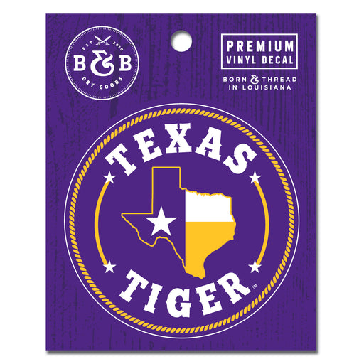 Designed for our family to the west, our B&B Dry Goods LSU Texas Tiger decals are the perfect way to rep your purple and gold pride in the Lone...