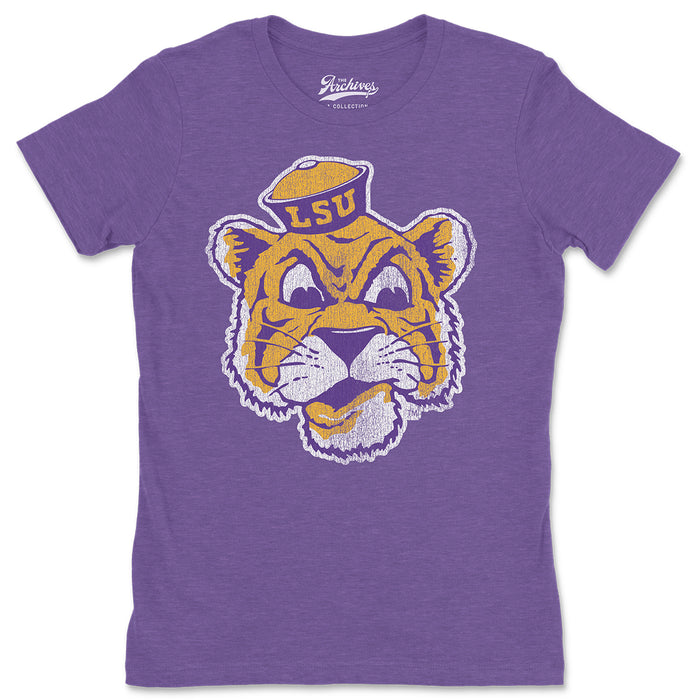 Pay homage to the Bayou Bengals with our B&B Dry Goods LSU Tigers Beanie Mike design from The Archives Collection. This premium vintage design is printed on a super soft tri-blend women's tee with a distressed graphic for the perfect worn in look and feel.