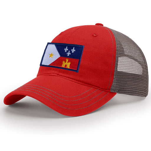 B&B Dry Goods Richardson Homegrown Acadiana Flag Twill Trucker Hat - Red / Charcoal