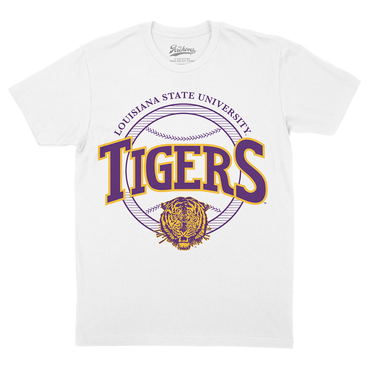 A classic collegiate look, our LSU Athletic Block design is printed on a super soft men's crew neck tee with a distressed graphic for the perfect w...