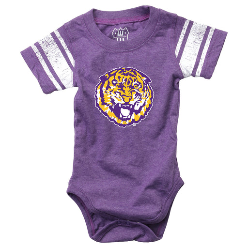 Start em off early with our LSU Tigers Round Vault Jersey Hopper onesie from Wes & Willy! This soft style infant onesie features a distressed p...