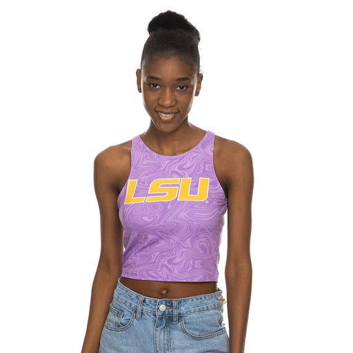 LSU Tigers ZooZatZ Women's Pattern 1st Down Crop Tank - Lavender