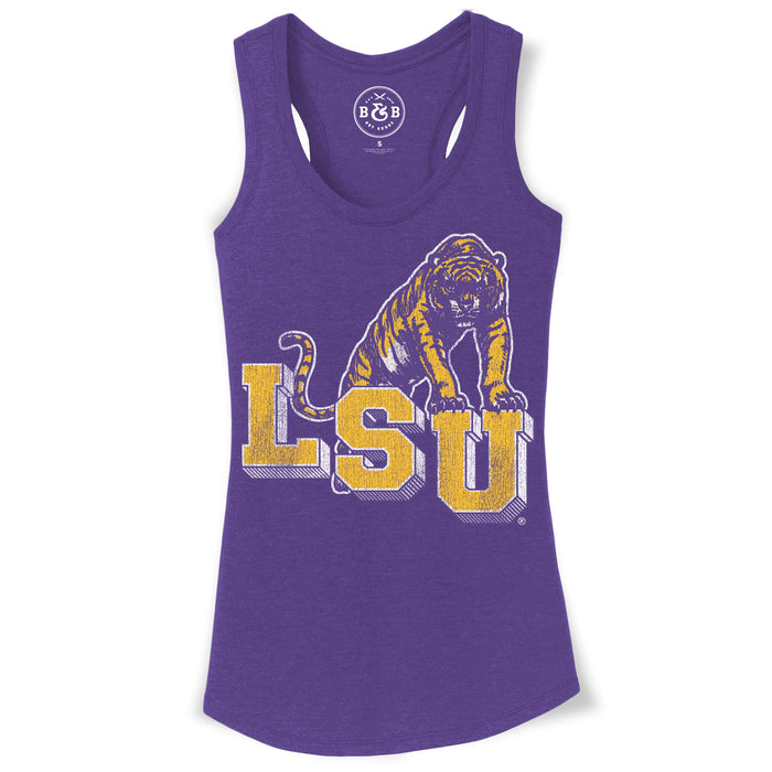 Inspired by a sweet 1970's tee we ran across, our LSU Tigers retro step design is printed on a super soft tri-blend racer back tank with a distressed graphic for the perfect worn in look and feel.