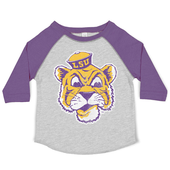 B&B Dry Goods LSU Tigers The Archives Beanie Mike Toddler 3/4 Sleeve Raglan T-Shirt - Grey / Purple