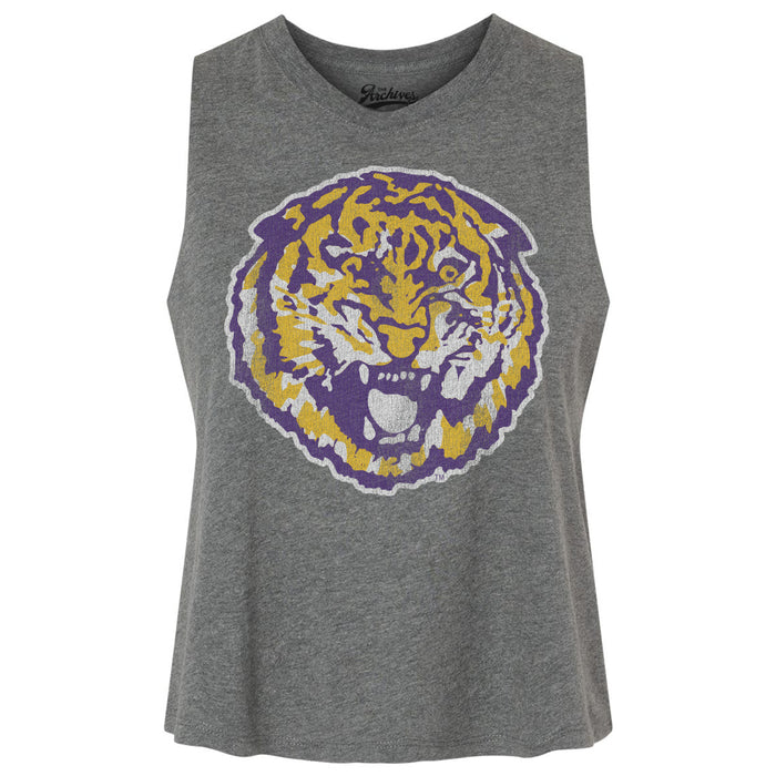 B&B Dry Goods LSU Tigers The Archives Round Vault Women's Racerback Crop Tank - Grey
