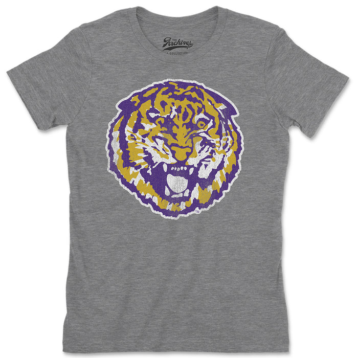 Pay homage to the Bayou Bengals with our B&B Dry Goods LSU Tigers Round Vault design from The Archives Collection. This premium vintage design is printed on a super soft tri-blend women's fit tee with a distressed graphic for the perfect worn in look and feel.