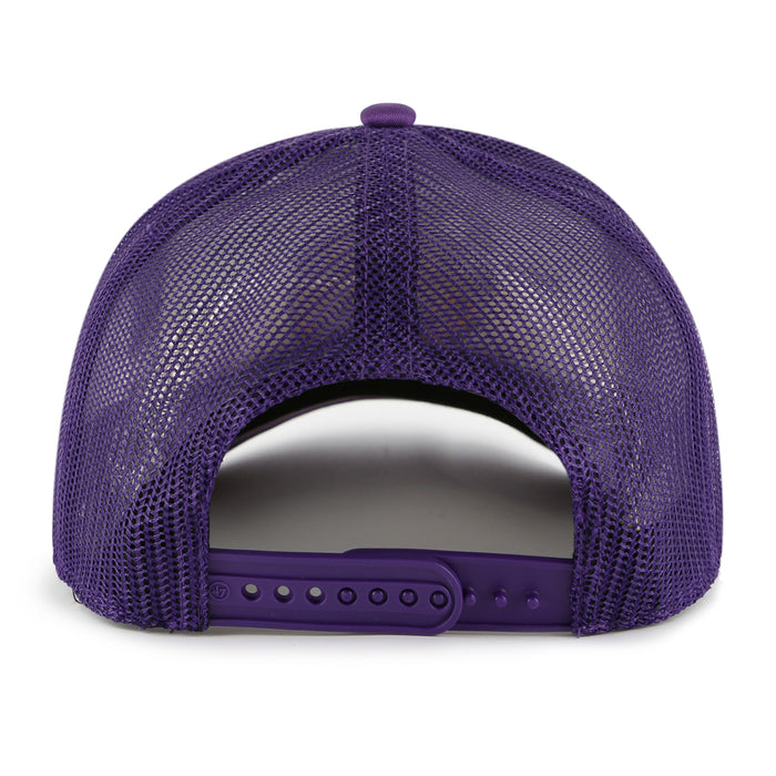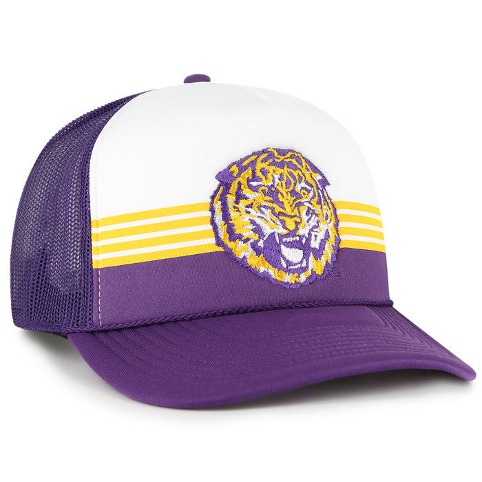 LSU Tigers 47 Brand Round Vault Liftoff Stripes Foam Mesh Trucker Hat - Purple