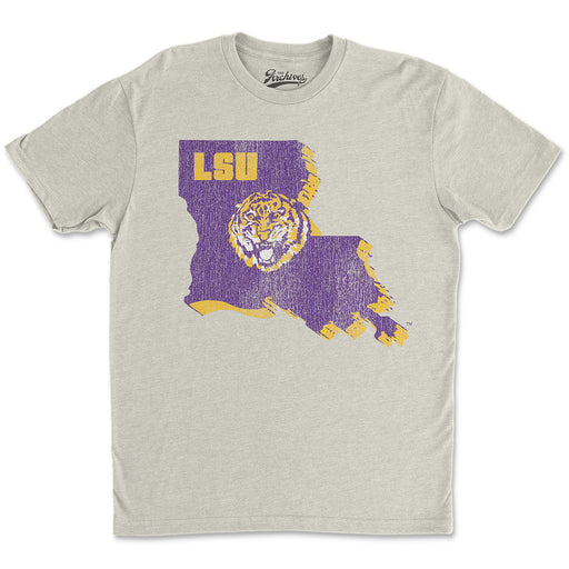 B&B Dry Goods LSU Tigers The Archives Round Vault State Garment Dyed T-Shirt - Pepper