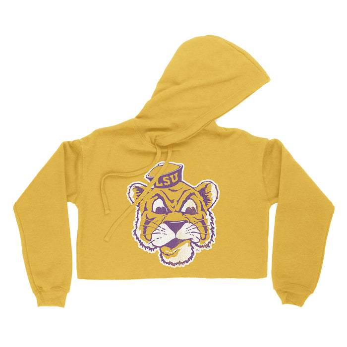 B&B Dry Goods LSU Tigers The Archives Beanie Mike Fleece Pullover Hooded Cropped Sweatshirt - Mustard