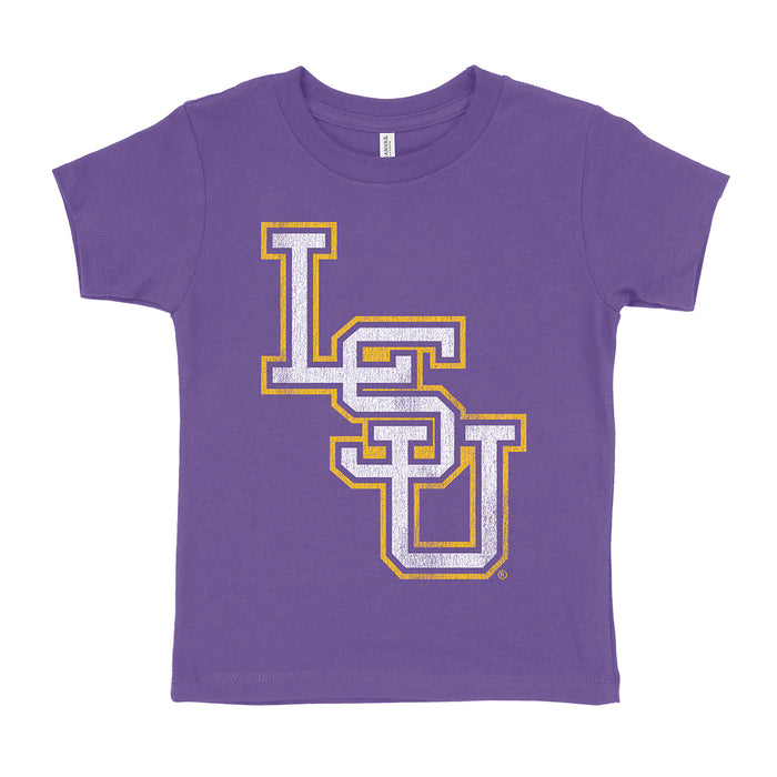 A classic baseball look, our LSU Tigers Baseball Interlock design is printed on a classic  toddler crew neck tee with a distressed graphic for the perfect worn in look and feel.