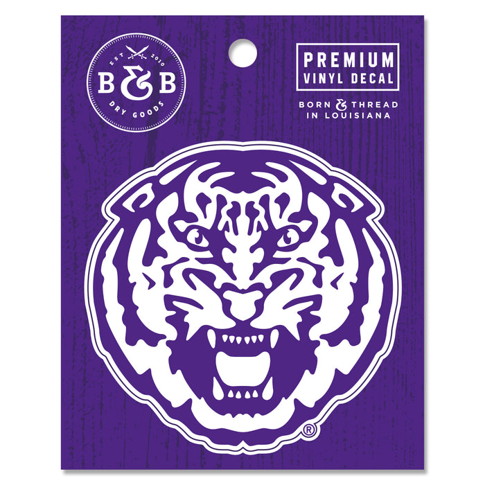 B&B Dry Goods LSU Tiger Head Premium Vinyl Decal - Purple / White