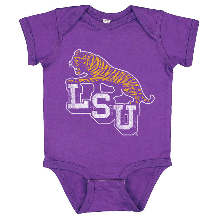 B&B Dry Goods LSU Tigers 68 Tiger Step Onesie - Purple