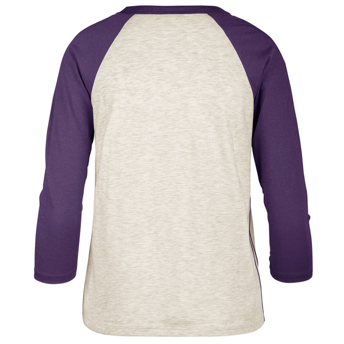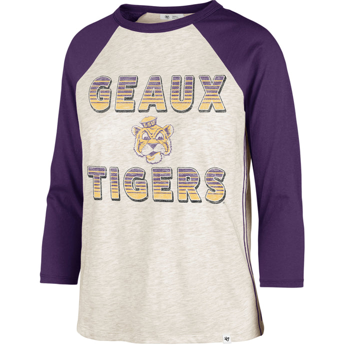 LSU Tigers 47 Brand Beanie Mike Good Vibes Women's Raglan Long Sleeve T-Shirt - Oatmeal / Purple
